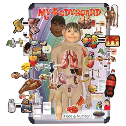 The Food & Nutrition My Bodyboard Pack includes almost 100 picture magnets and text descriptions, designed to help teachers and health professionals engage individuals or groups in meaningful discussions about healthy eating, nutrition, and obesity.