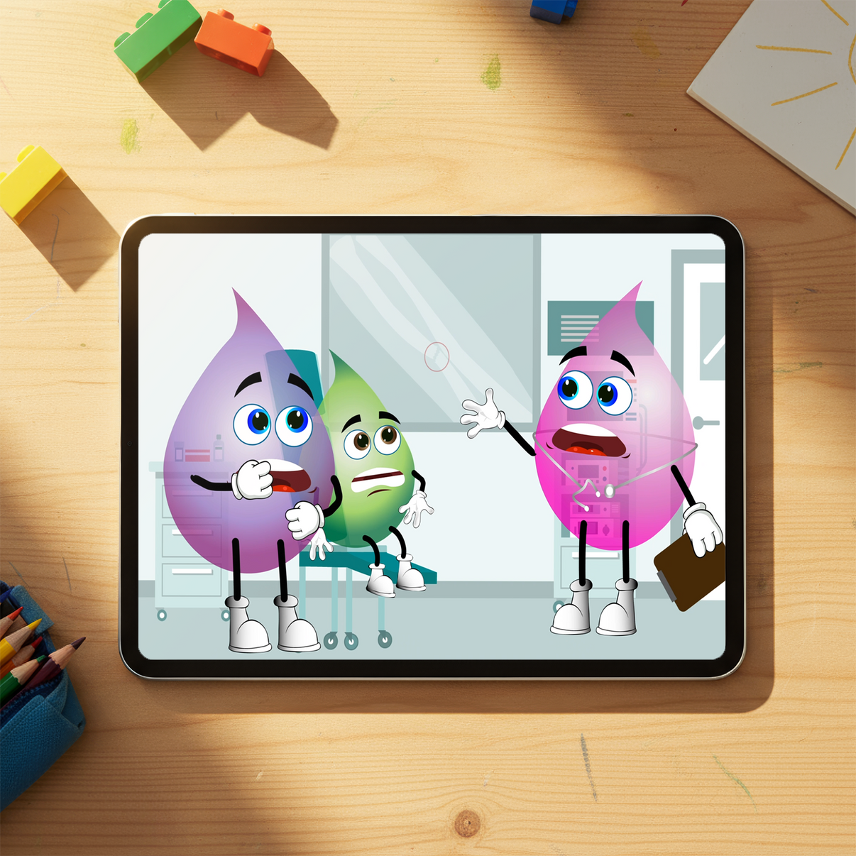 At the end of the story, Green can go back to school. The other drops are all excited to see him and have made him feel better. This Story and many other titles can be viewed in animation and read-to-me format via the RainbowSmart app!
