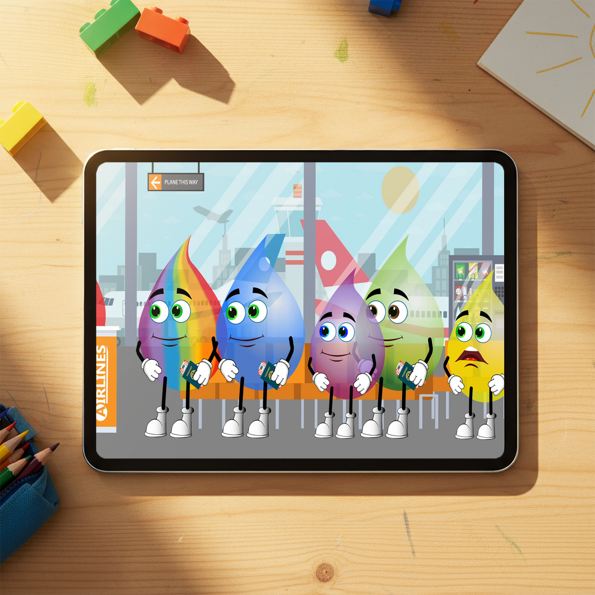 Yellow Goes on Holiday Educational Cartoons. Yellow Is feeling very excited. Today she is going on holiday with her family. They are going to fly on a plane to sunny Spain. Yellow has not been on a plane before. It is nearly time to go, so they join a queue to get on the plane. During this story, Yellow and her family are going on holiday. It is the first time Yellow has been on an airplane, and she feels very scared. How will Yellow manage her feelings?
