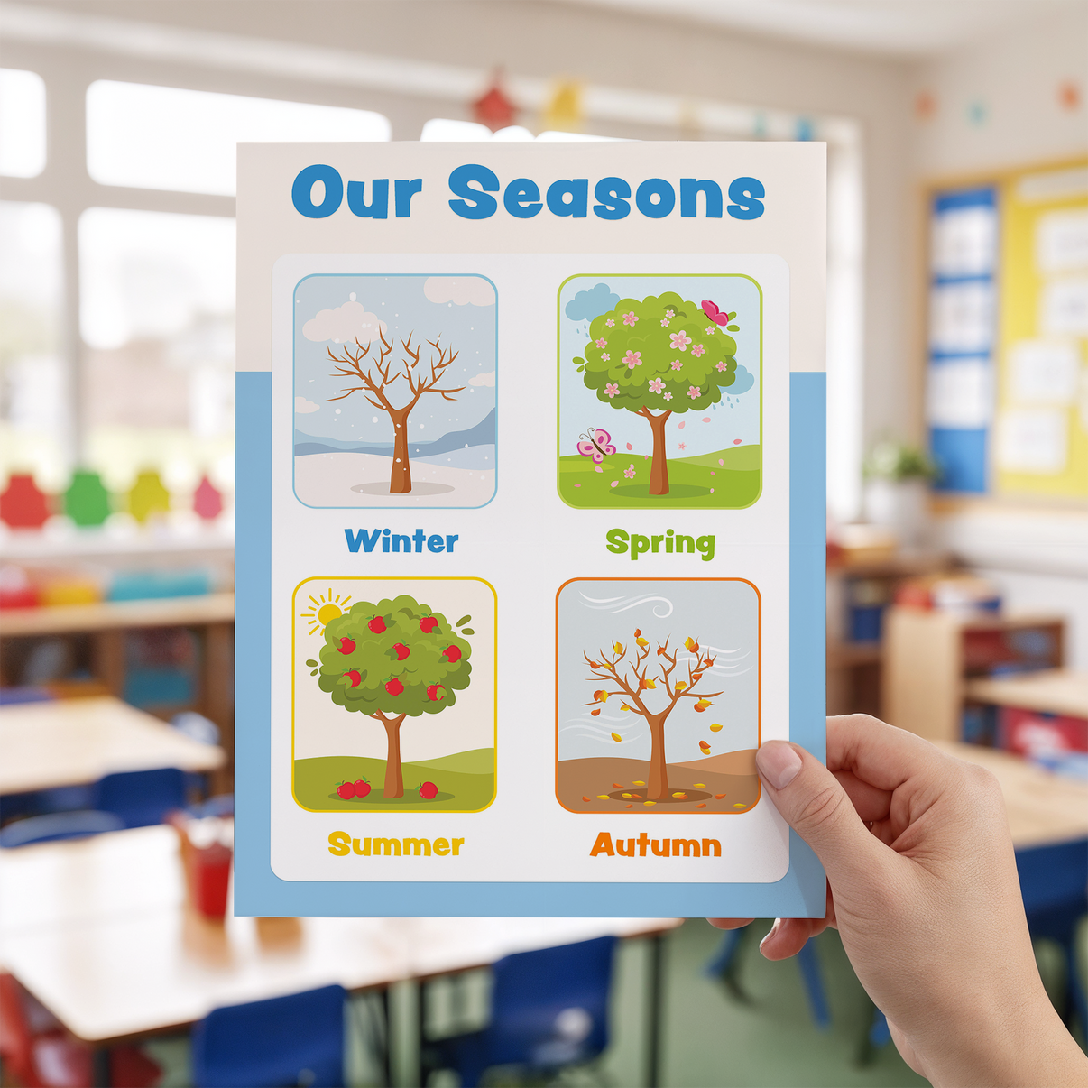 Brighten your classroom and support early science learning with this FREE Seasons Poster - a clear, engaging visual that helps children understand the four seasons and how our world changes throughout the year.