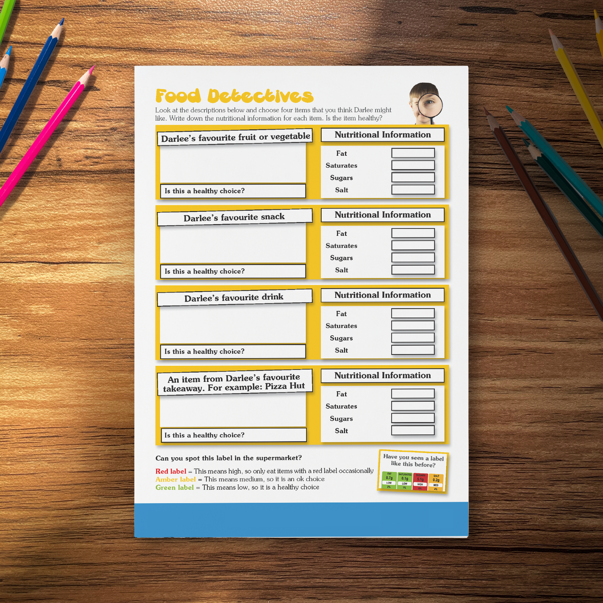 Activities typically include analysing food labels, identifying healthy and unhealthy ingredients, and understanding the basics of a balanced diet. Children may engage in exercises like categorising foods into different groups (fruits, vegetables, proteins, etc.), detecting hidden sugars in processed foods, or investigating the benefits of various vitamins and minerals.