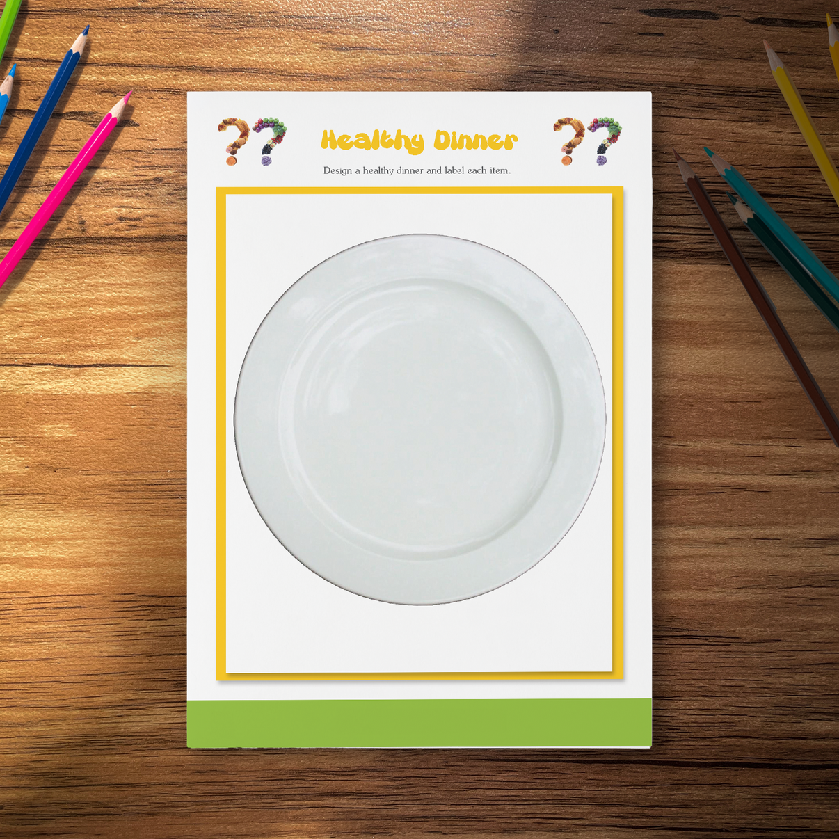 These exercises teach children about the importance of a balanced diet and involve them in meal planning, which can be both educational and empowering. The goal is to instil healthy eating habits from a young age, making nutrition an interactive and enjoyable part of their daily life. Through these worksheets, children learn the value of eating healthily in a hands-on, memorable way.