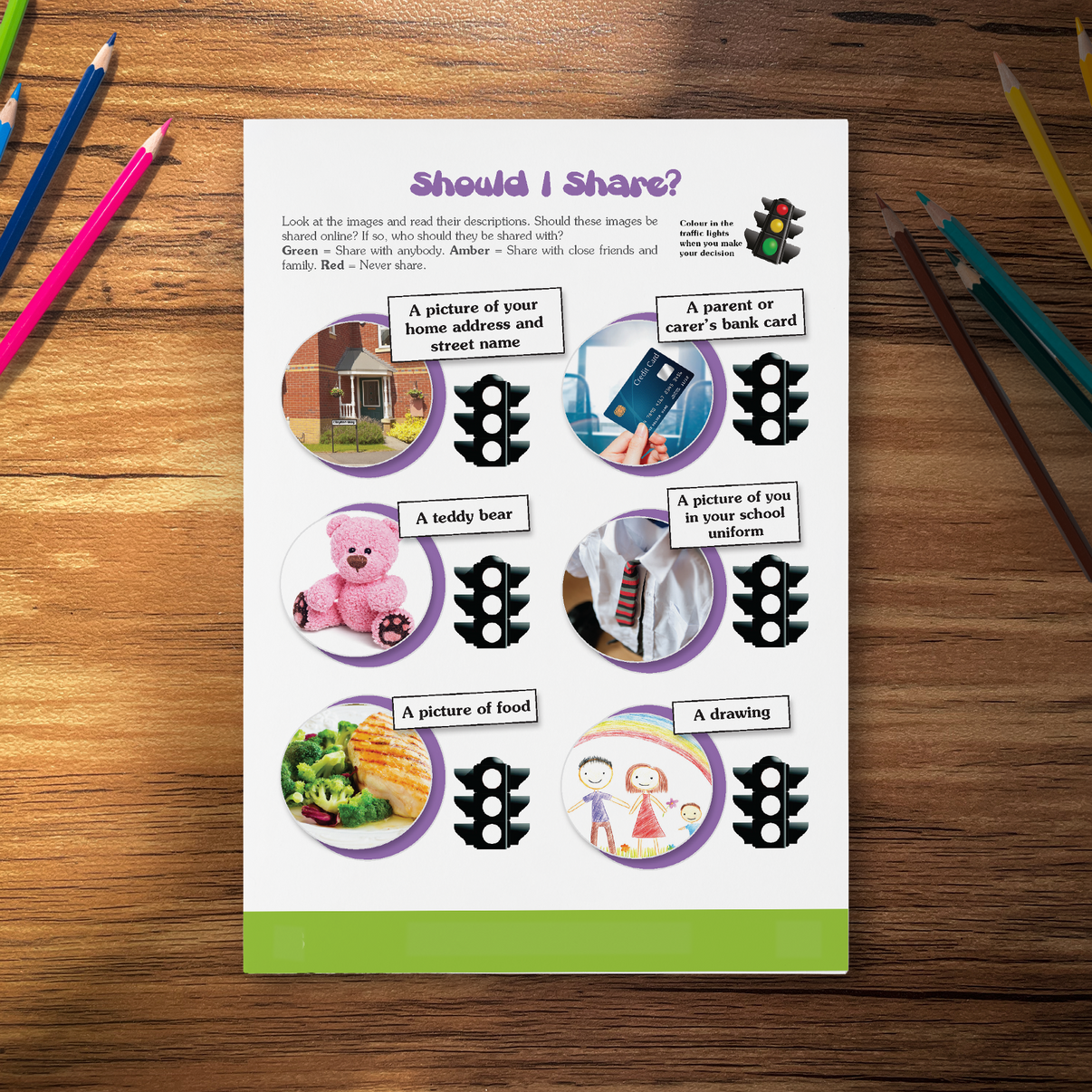 Activities typically involve various scenarios, such as sharing personal details online, lending a favourite toy to a friend, or discussing family matters with others. Children are encouraged to consider the implications of sharing in each situation, weighing factors like trust, privacy, and the potential impact on themselves and others.